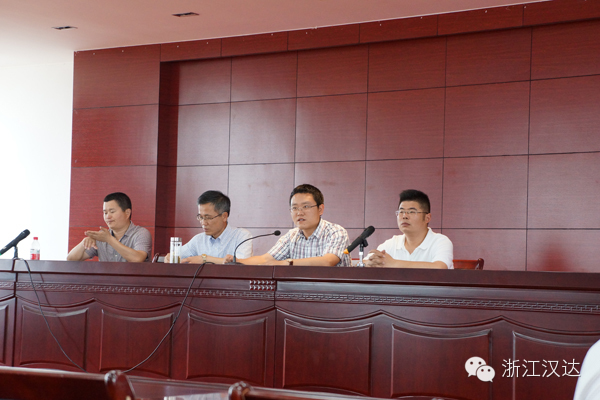 在參觀完公司的安全生產(chǎn)標(biāo)準(zhǔn)化管理成效后,參觀團轉(zhuǎn)移陣地,到晨龍鋸床召開參觀后的交流大會。會上,浙江漢達總經(jīng)理呂定超作了發(fā)言。