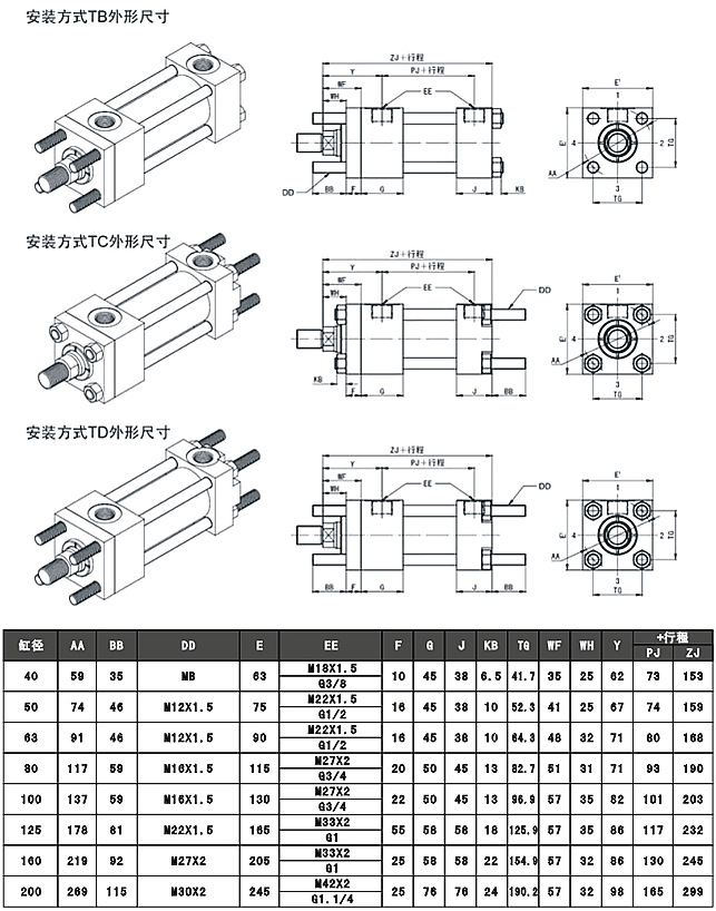 YGD標(biāo)準(zhǔn)液壓缸TB\TC\TD四拉桿液壓缸具體參數(shù)
