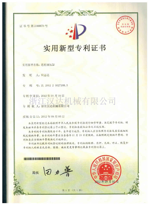 多軸鉆床潤滑系統(tǒng)新型專利證書